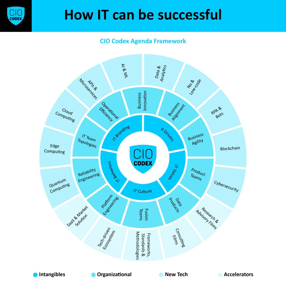 O CIO Codex Framework oferece uma visão integrada dos conceitos fundamentais para uma área de tecnologia moderna e atuante, preparada para encarar e criar o futuro digital.