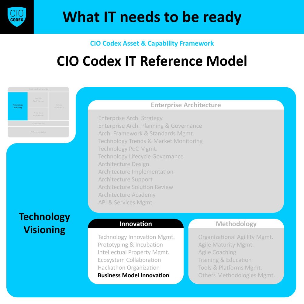 A Business Model Innovation, inserida na camada de Technology Visioning do CIO Codex Capability Framework, desempenha um papel fundamental na capacidade de uma organização de se adaptar e prosperar em um ambiente empresarial dinâmico e em constante evolução.