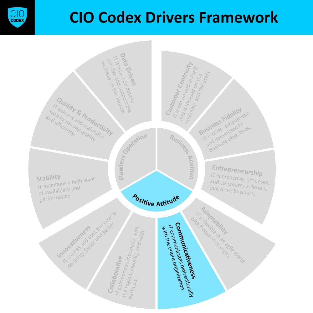 O driver Communicativeness evidencia a importância da comunicação eficaz como um elemento vital para o sucesso de qualquer departamento de Tecnologia da Informação.