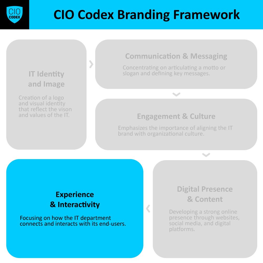 O eixo Experiência e Interatividade do CIO Codex Branding Framework é essencial para a construção de um relacionamento sólido e duradouro entre o departamento de TI e seus usuários finais.