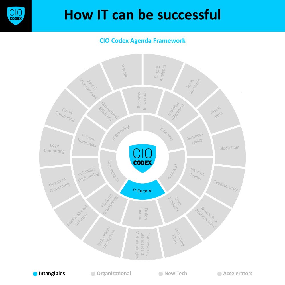 O CIO Codex Culture Framework encapsula a essência de uma cultura de TI positiva, que está em sintonia com a dinâmica da era digital.